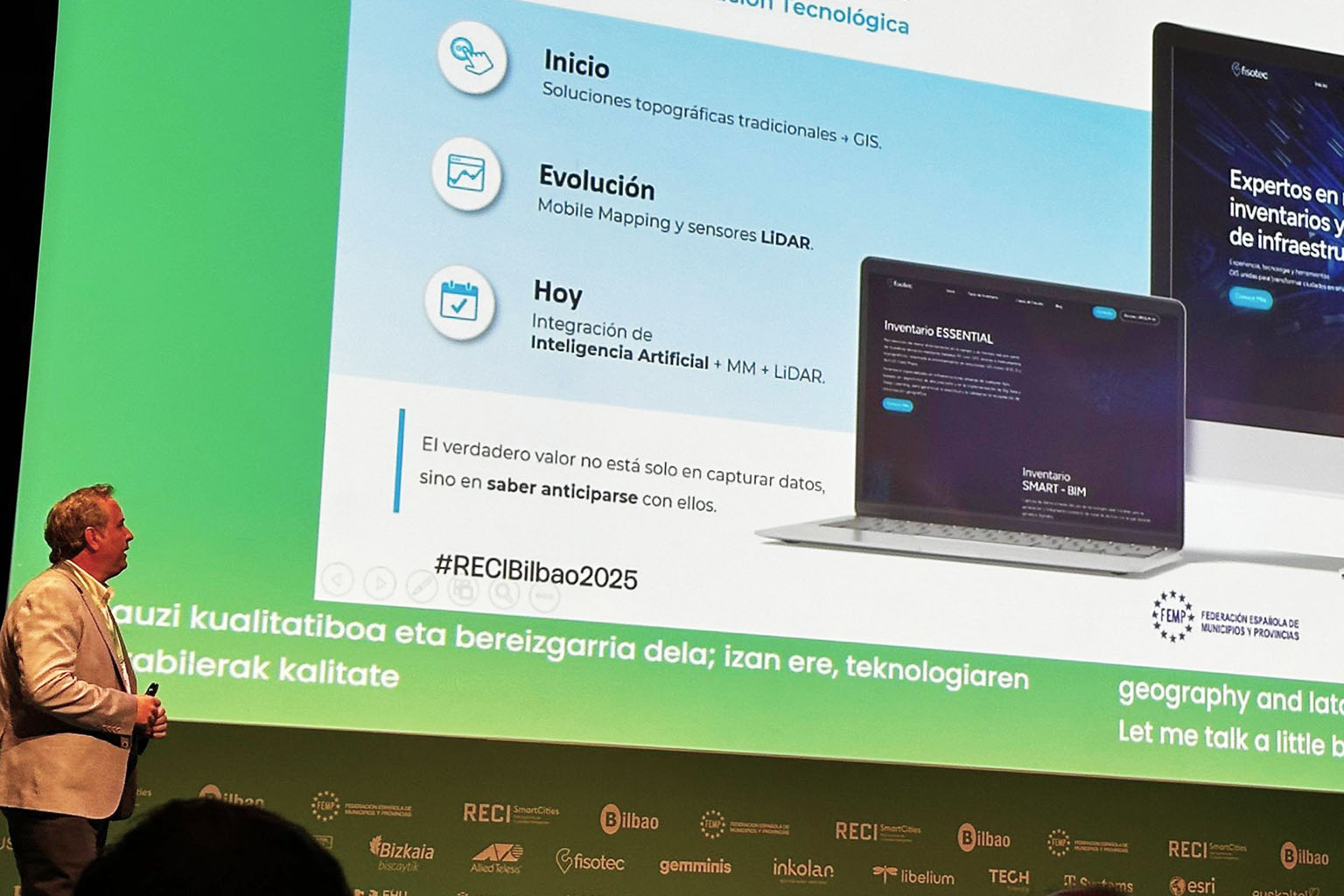 Por su parte, FISOTEC aportó su experiencia en la captura y gestión inteligente de datos urbanos, con tecnologías GIS, BIM, Mobile Mapping y Visión Artificial que permiten crear inventarios digitales de infraestructuras municipales, modelar gemelos digitales y generar información precisa para la toma de decisiones.